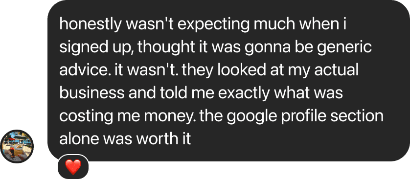 Most audits stop at "your Google profile needs work." Ours tells you what to fix, how to fix it, and what it's costing you every month you don't.